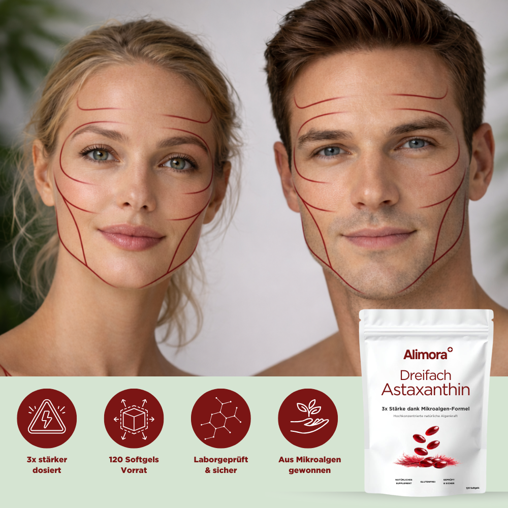 Meine Haut wurde in der Sonne schnell rot – egal wie vorsichtig ich war. Seit ich Alimora Dreifach Astaxanthin nehme, fühlt sich UV weniger „aggressiv“ an und meine Haut reagiert entspannter. Ich geh wieder viel lieber raus.