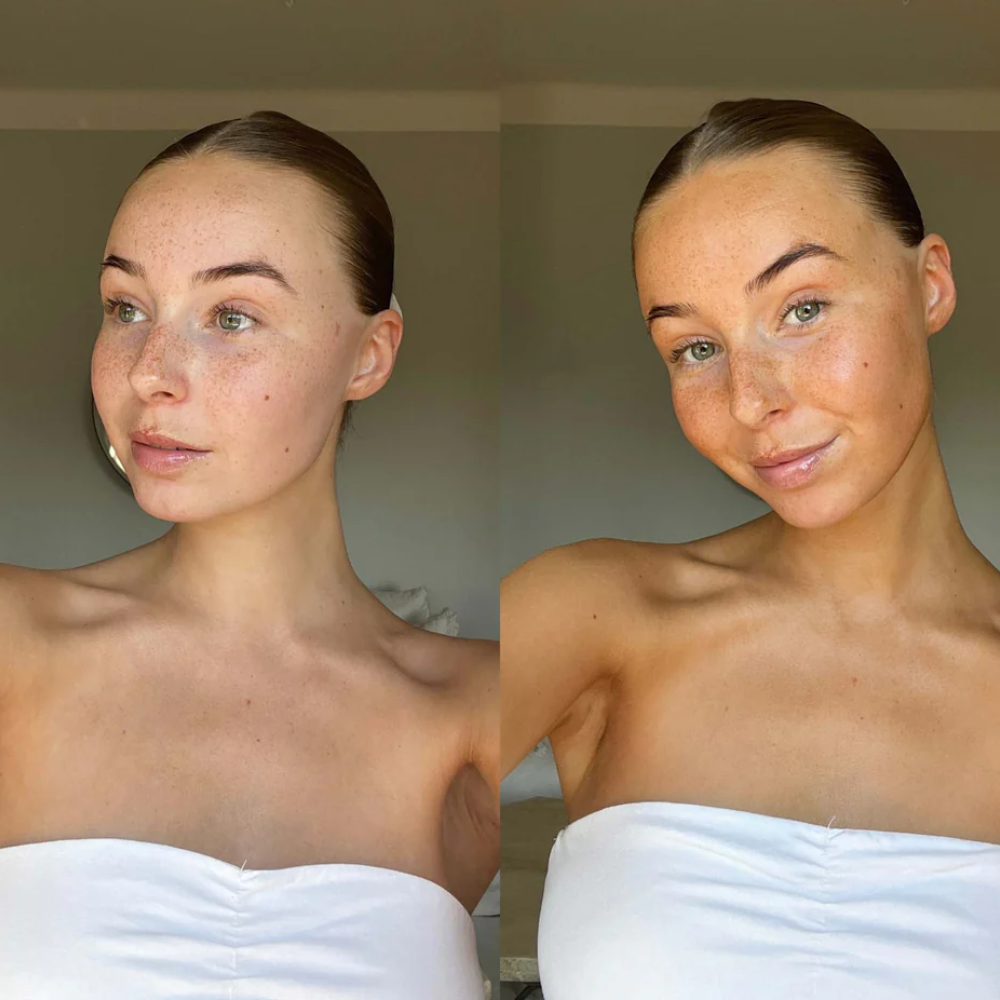 Nach ein paar Wochen hat meine Haut diesen gleichmäßigen warmen Ton bekommen den ich sonst nur aus dem Urlaub kenne. Kein Flecken keine Sonne einfach ein gesunder Glow der jeden Tag besser aussieht.