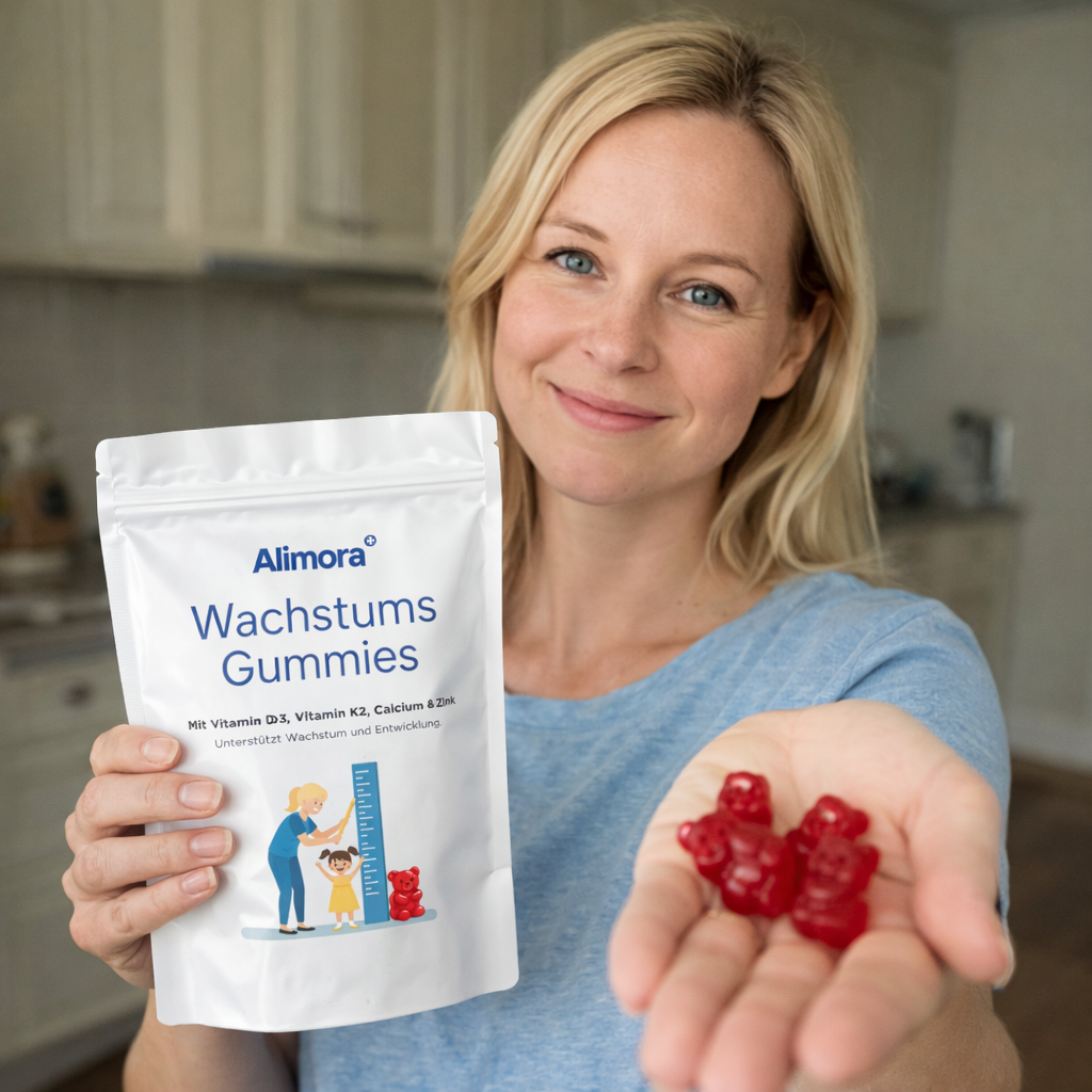 Dein Kind wächst jeden Tag – körperlich und mental. Die Alimora Wachstums Gummies liefern gezielt Vitamin D3, K2, Calcium und Zink, um Knochenaufbau und Entwicklung optimal zu unterstützen. Lecker im Geschmack, leicht einzunehmen und perfekt in den Alltag integrierbar. Entwickelt für Eltern, die ihrem Kind bewusst das Beste geben wollen.
